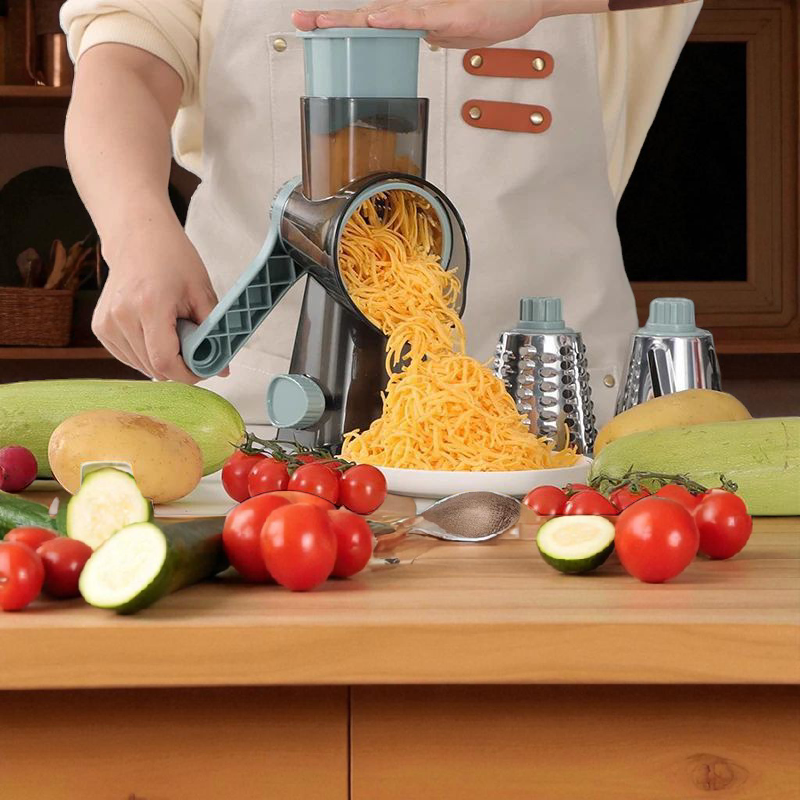 - El paquete incluye: 1 rallador de queso rotatorio 3 en 1