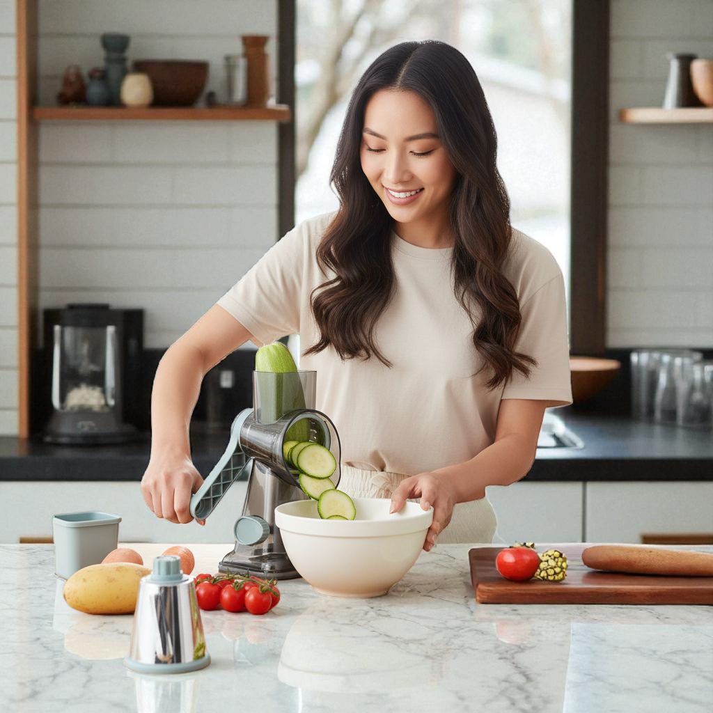 Rebana, tritura y muele con facilidad. Olvídate de los ralladores convencionales y aprovecha al máximo tus ingredientes.